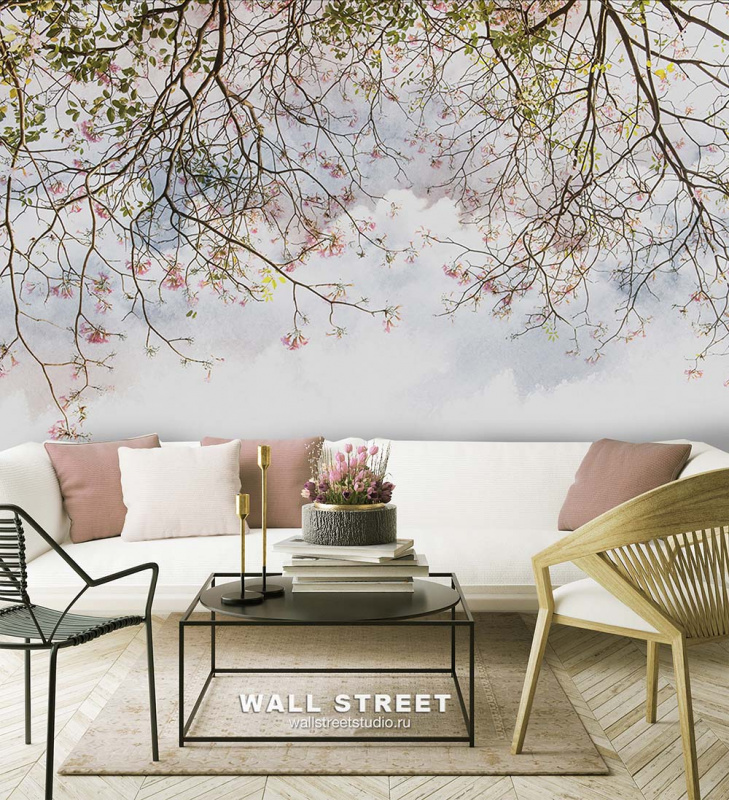 - Рисунок: Ветки, Цветы, Листья, Облака